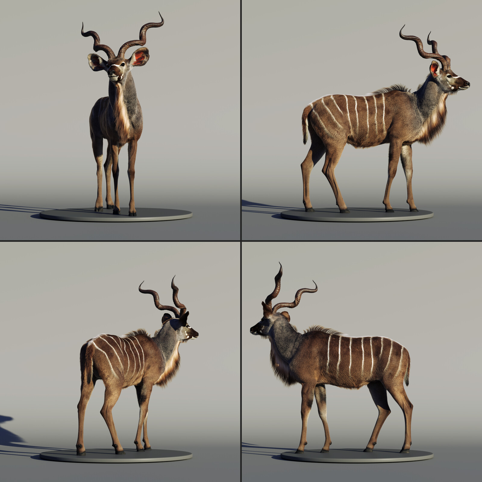 I present to you the Kudu Bull, a personal project that took around 3 weeks to finish from modeling, texturing, grooming and lookdev. Software used: Maya, Zbrush, Yeti, Substance Painter & Arnold.